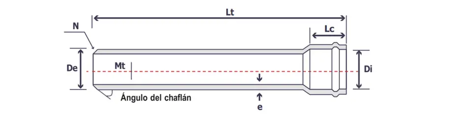 | Diámetro Nominal | Diámetro Nominal | Diámetro Exterior (De) | Espesor de pared (e) |